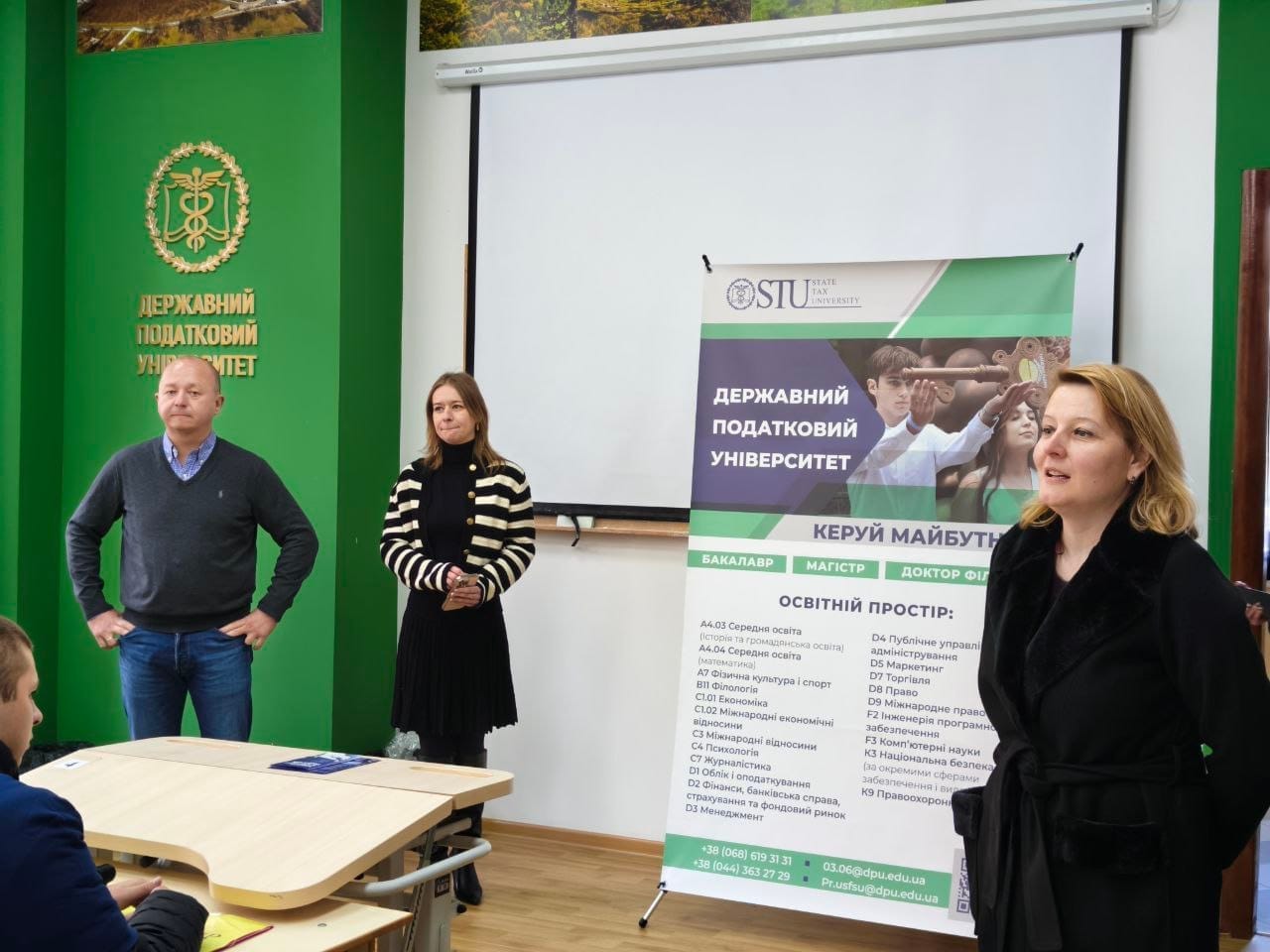 Наше знайомство з університетом почалося з зустрічі з проректором з науково-педагогічної роботи та соціального розвитку Дмитром Венцковським та викладачами вузу. Вони ознайомили майбутніх абітурієнтів з факультетами університету, новітніми освітніми програмами вишу, затребуваними престижними спеціальностями, які отримують студенти.